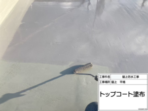 最後に防水層を保護するためのトップコートを塗り、これにて完工です。